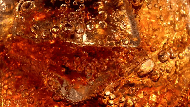 Top view of a yellow can with orange dots and a pull tab on a yellow background.